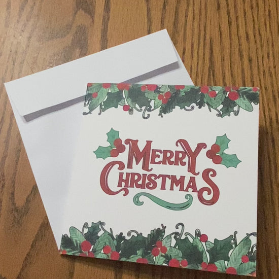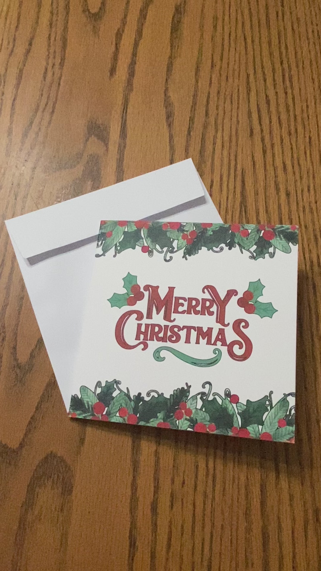 Send festive cheer with this playful Christmas greeting card featuring a charming holly wreath design. The blank interior lets you personalize your message for every special someone. Each card comes with an envelope included, making it easy to spread holiday joy.