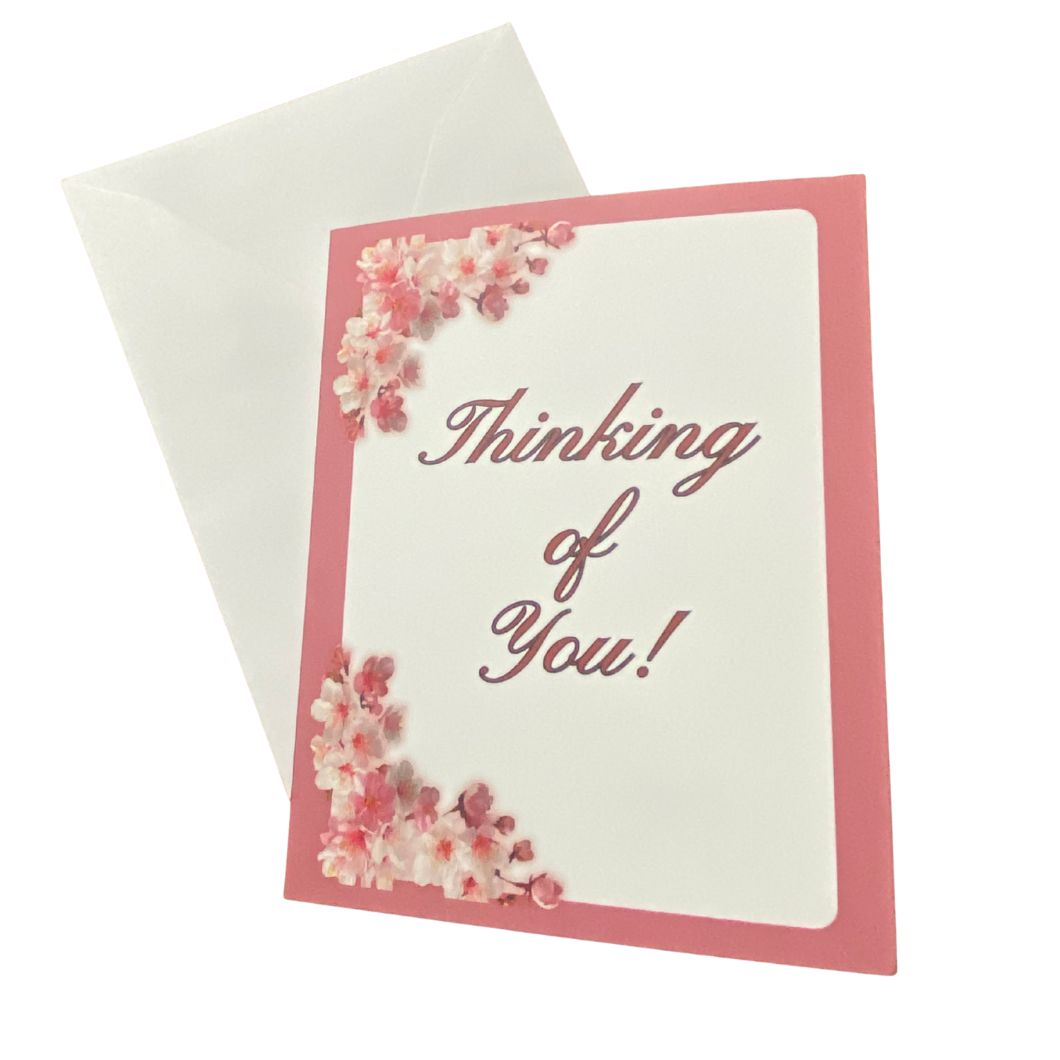 Brighten someone's day with this floral Thinking of You greeting card. Featuring charming floral artwork and a heartfelt message inside, it's perfect for sending to friends and family. Comes with a matching envelope ready to mail your thoughtful note with a cheerful touch.